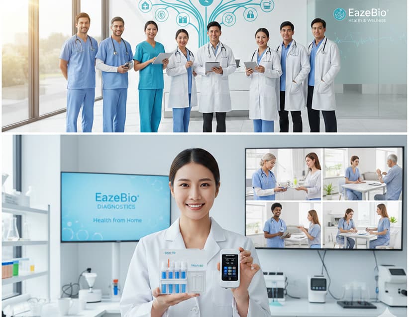 EazeBio also enables continuity between patients and clinicians. Select at-home wellness panels allow individuals to generate structured biological data using their smartphone as the reader, which can then: